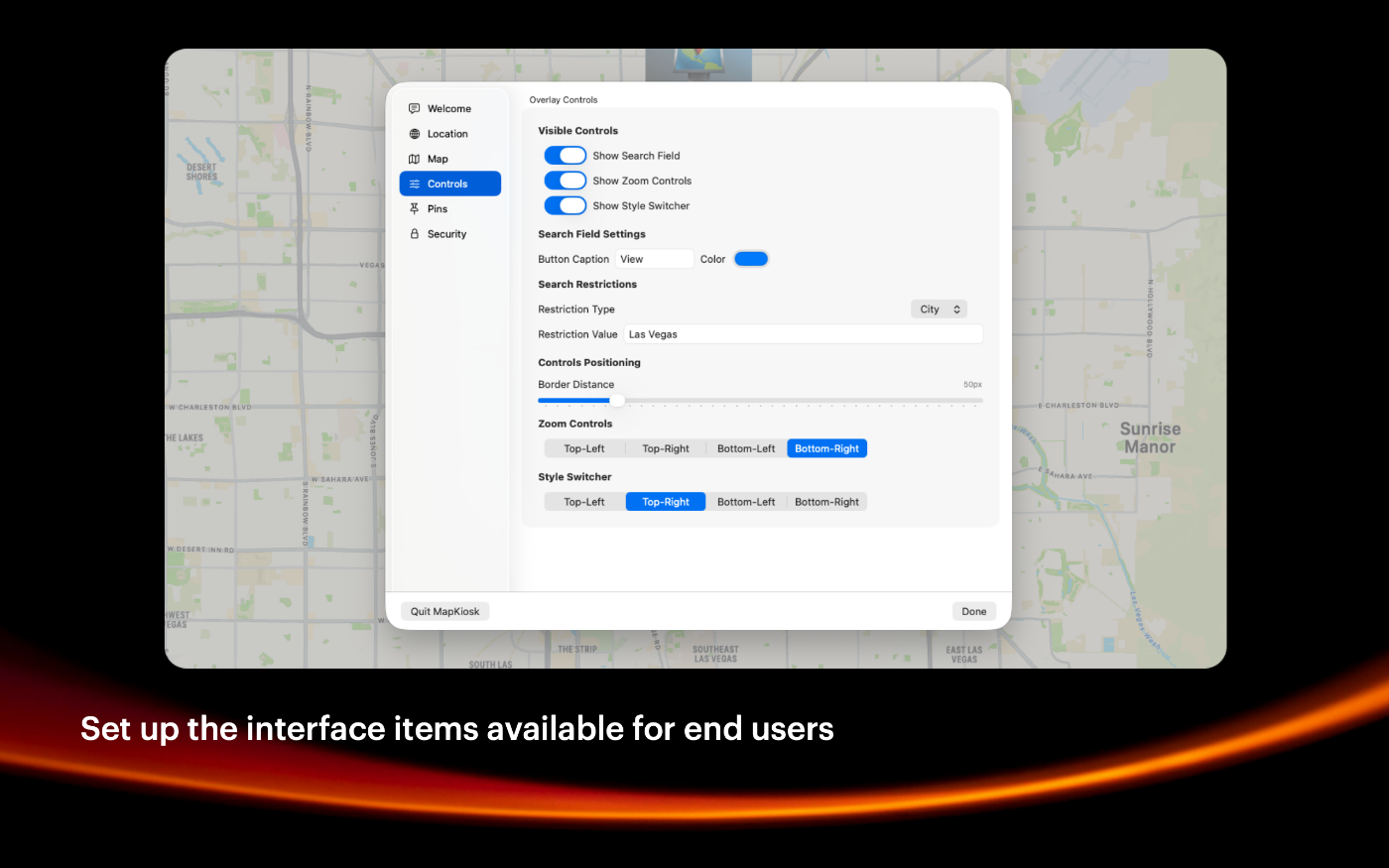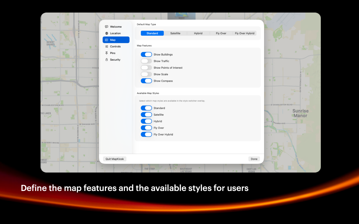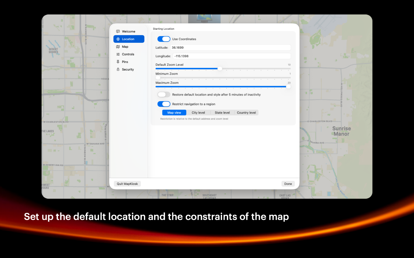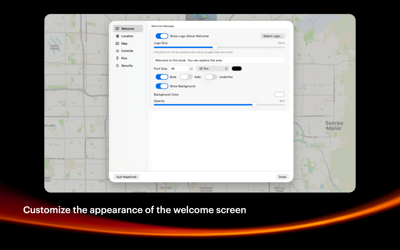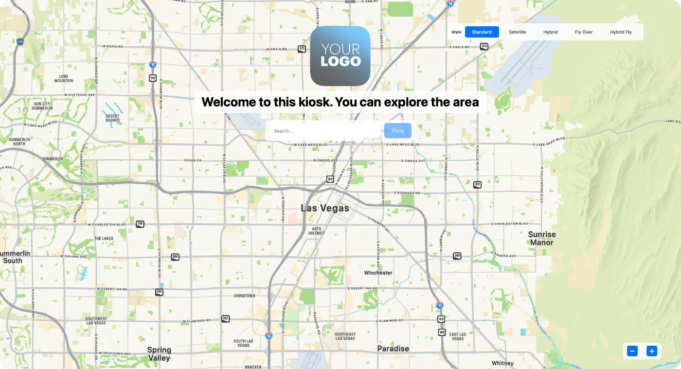 MapKiosk is a full-screen, and secure app designed for kiosks installed in public spaces like museums, libraries, trade-shows, office lobbies, and more. This app is tailored to provide users with an intuitive and engaging way to explore their surroundings, making it perfect for tourist information centers and retail environments. MapKiosk leverages the full screen of the kiosk to display Apple Maps, providing a rich and detailed view of the area. The high-resolution maps ensure that users can easily navigate and explore with clarity. Users can interact with the map using touchscreen controls, allowing them to zoom in and out, pan around, and tap on pins for more information. Detailed information cards pop up when a pin is selected, providing additional details. Administrators can customize the pins and information displayed based on the kiosk's location and audience. This allows for a tailored experience that meets the specific needs of different environments.