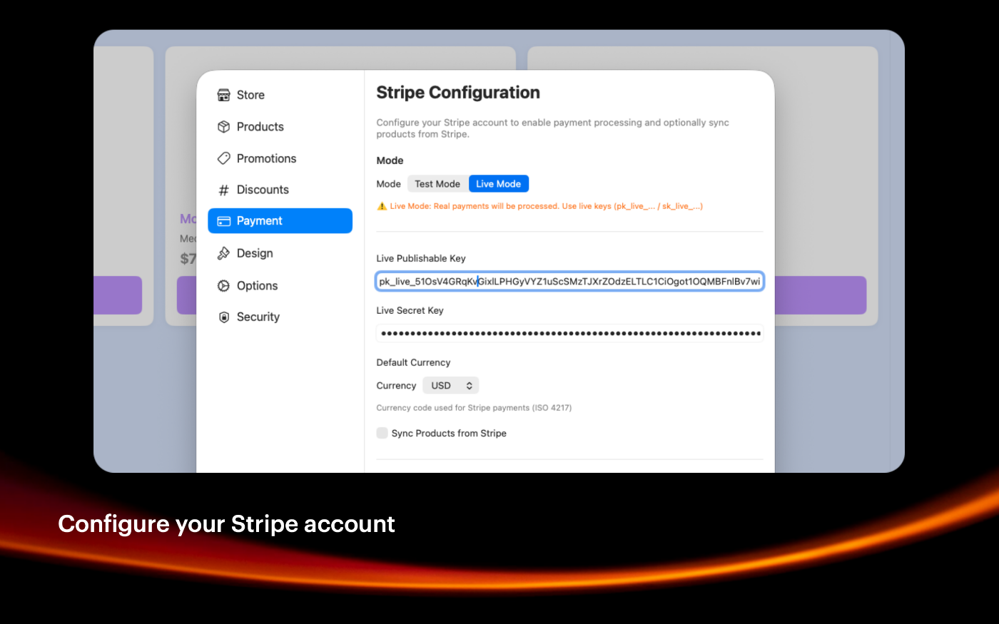 Add your Stripe account information