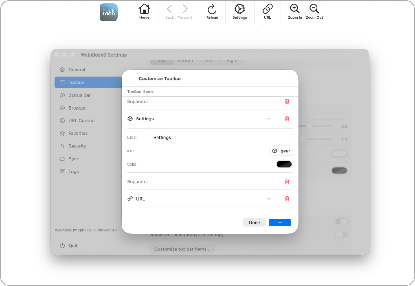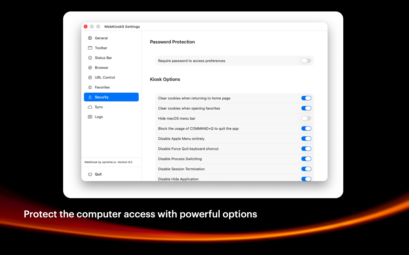 For over a decade, WebKiosk has set the standard as the secure, reliable web browser tailored for public Internet kiosks. Trusted by IT professionals worldwide, it's the ideal solution for spaces like museums, libraries, trade shows, office lobbies, and more. WebKiosk 9 was rebuilt from scratch using Swift language for modern version of macOS and iPadOS. This powerful browser allows you to display online websites or offline local content with ease, ensuring your device stays locked to the specific experience you define. You have complete control over the user interface, with the ability to customize toolbars, adjust colors to match your brand, and hide system distractions for a fully immersive presentation. Built with security in mind, it features advanced URL filtering, password-protected settings, and an idle timer that automatically clears user data and resets the session. With new capabilities like iCloud sync for effortless fleet management and support for camera and microphone access, WebKiosk 9 delivers the reliable, customizable, and secure browsing environment essential for any public-facing display. Version 8 and version 7 are still available for older versions of macOS.