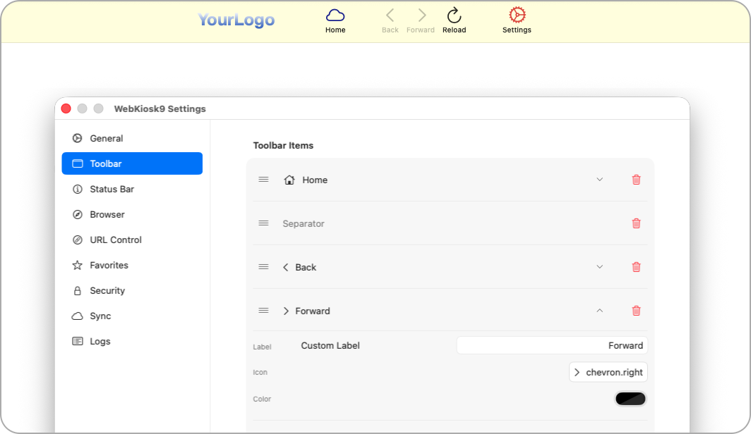 Trusted by IT professionals worldwide, WebKiosk is the ideal solution for spaces like museums, libraries, trade shows, office lobbies, and more. Version 9 was rebuilt from scratch using Swift language for modern version of macOS. This powerful browser allows you to display online websites or offline local content with ease, ensuring your device stays locked to the specific experience you define. You have complete control over the user interface, with the ability to customize toolbars, adjust colors to match your brand, and hide system distractions for a fully immersive presentation. Built with security in mind, it features advanced URL filtering, password-protected settings, and an idle timer that automatically clears user data and resets the session. With new capabilities like iCloud sync for effortless fleet management and support for camera and microphone access, WebKiosk 9 delivers the reliable, customizable, and secure browsing environment essential for any public-facing display. Version 8 and version 7 are still available for older versions of macOS.