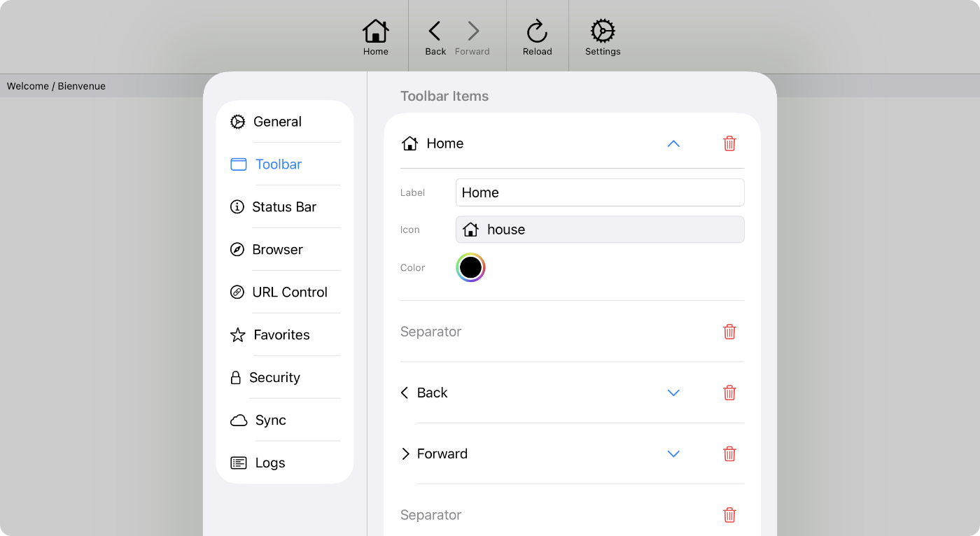 Trusted by IT professionals worldwide, WebKiosk is the ideal solution for spaces like museums, libraries, trade shows, office lobbies, and more. Version 9 was rebuilt from scratch using Swift language for modern version of iPadOS. This powerful browser allows you to display online websites or offline local content with ease, ensuring your device stays locked to the specific experience you define. You have complete control over the user interface, with the ability to customize toolbars, adjust colors to match your brand, and hide system distractions for a fully immersive presentation. Built with security in mind, it features advanced URL filtering, password-protected settings, and an idle timer that automatically clears user data and resets the session. With new capabilities like iCloud sync for effortless fleet management and support for camera and microphone access, WebKiosk 9 delivers the reliable, customizable, and secure browsing environment essential for any public-facing display. Version 8 is still available for older versions of iPadOS.